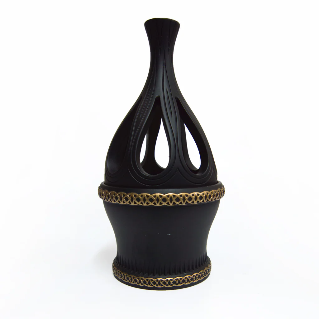 Bring a taste of the middle east and surround yourself with the relaxing aromas of Bukhoor with this Modern Decanter Burner, with gold detailing on base, a removable perforated tray for burning coal, and a removable perforated Polyresin lid available in a range of colours.